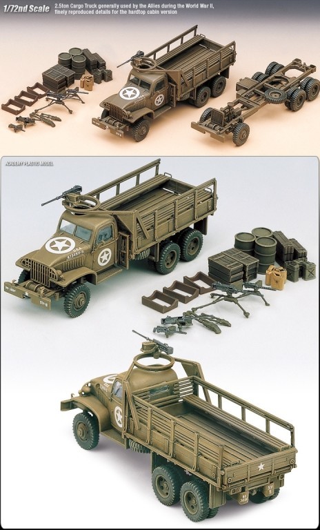 ACADEMY plastic kit "US 2.5 ton Cargo truck and accessories" (cement and paints not included)