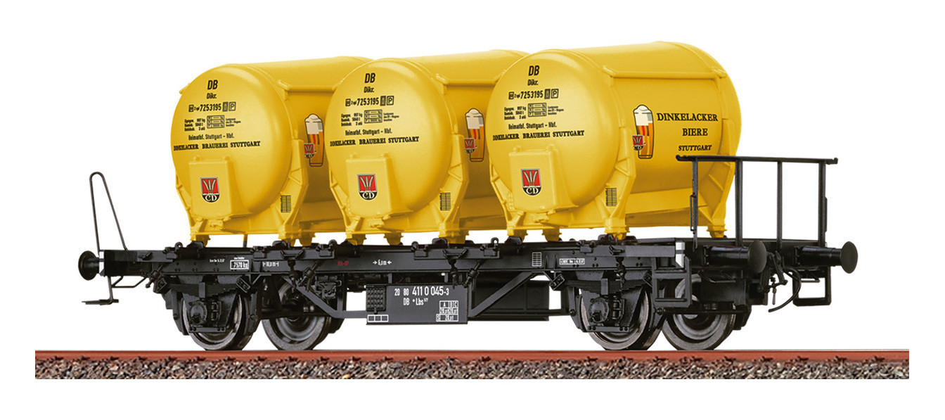BRAWA wagon plat à essieux avec 3 conteneurs "DINKELACKER" GW-L Lbs 577 DB ep III