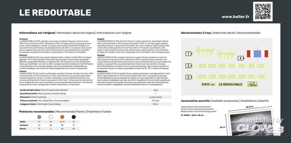 HELLER maquette plastique à construire "Sous marin LE REDOUTABLE" ( peintures et colle non incluses)