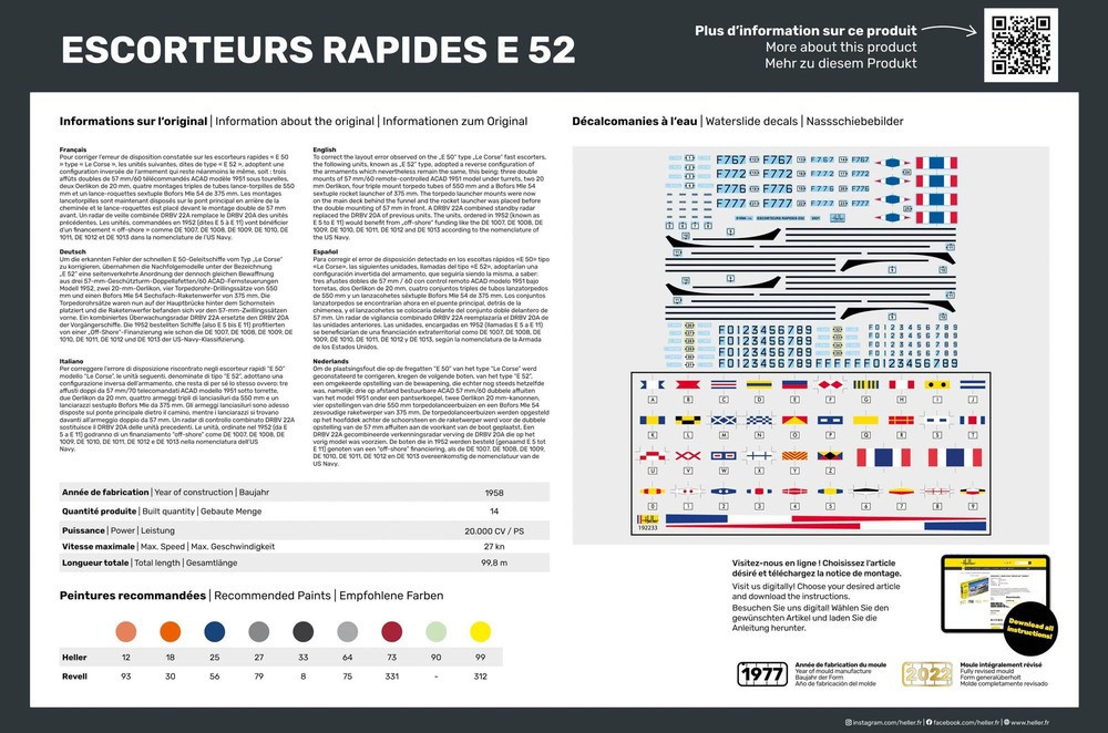 HELLER plastic kit " French Navy Escorteurs rapides E 52" (cement and paints not included)