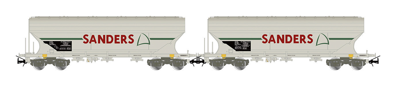 JOUEF set de 2 wagons céréaliers (face plate et bombée)"SANDERS livrée grise" SNCF ep V