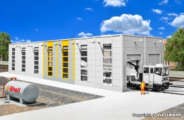 KIBRI maquette plastique à construire de complément d'atelier moderne de maintenance ferroviaire (colle non incluse)